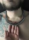 Полновесная цепочка. Очень популярное среди мужчин плетение «Рамзес», также на просторах интернета данное плетение можно увидеть под названием «Двойной обратный бисмарк». В особенности мужское внимание привлекают толстые серебряные цепочки из «Двойного обратного бисмарка» с размерами близкими к размерам на фото. И тем не менее, если такая цепочка лично для Вас смотрится на шее весьма громоздкой или наоборот маловатой, то Вы без особого труда можете откорректировать практически любой её параметр под свои вкусы, в том числе есть возможность выбрать как с чернением, так и нечернёную или же с родированием.