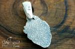 Обратная сторона имеет текстурированную поверхность с декоративным зернением, обеспечивающим выразительный контраст и цельный визуальный стиль изделия. Компактные размеры делают подвеску удобной для ежедневного ношения, а универсальный дизайн гармонично дополняет как повседневный, так и более выразительный образ.