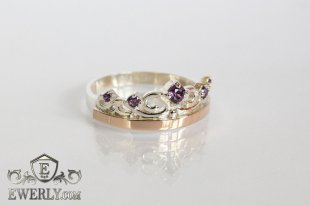 Срібна каблучка у вигляді корони із золотом та синіми фіанітами
