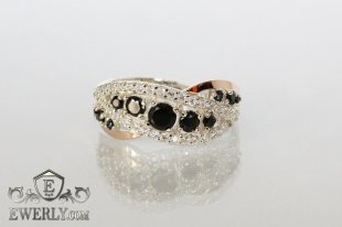 Красиве кільце зі срібла 925 проби із золотими вставками 375 проби та камінням кольору шампань для дівчини.