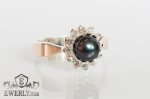 Жіноче срібне кільце з золотом і чорним фіанітом у вигляді перлини
